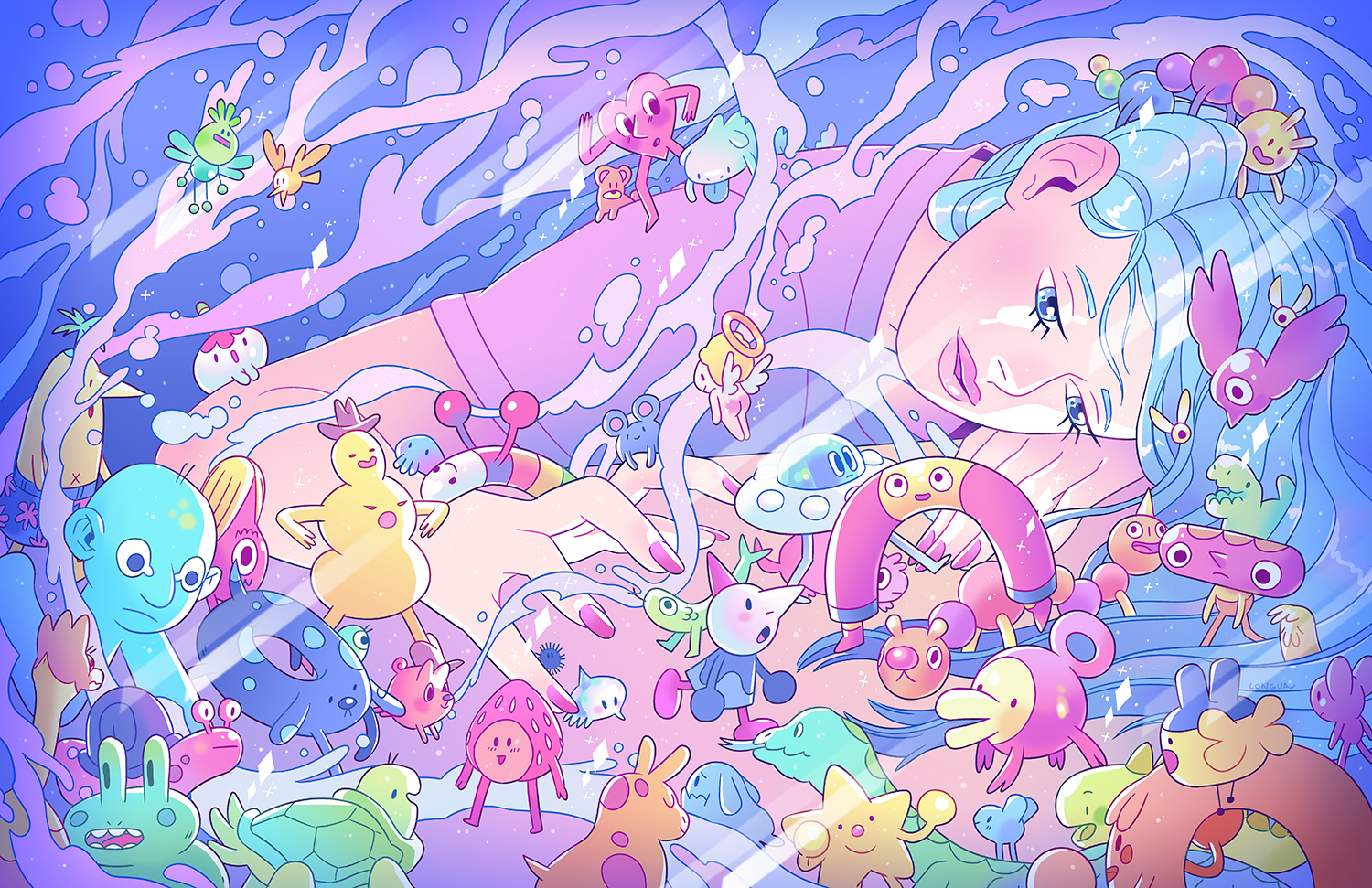 Working with Harmonix, the creators of popular music games including Rock Band and Dance Central, I created a series of illustrations for their card game Drop Mix. Each card required a different color scheme, but also needed to tie together thematically.
